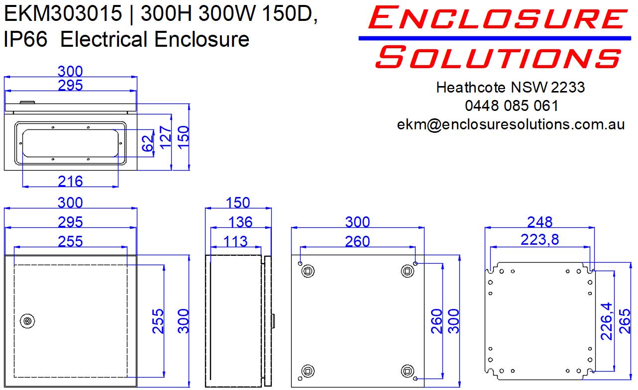 EKM303015 300H 300W 150D Industrial electrical enclosure steel metal box cabinet switchboard, IP66, RAL 7035 Grey | Specifications