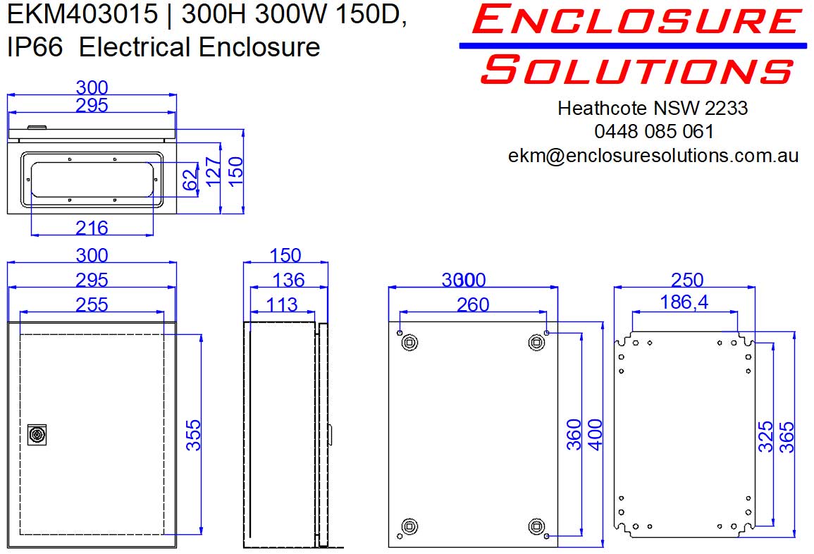 EKM403015 400H 300W 150D Industrial electrical enclosure steel metal box cabinet switchboard, IP66, RAL 7035 Grey | Specifications