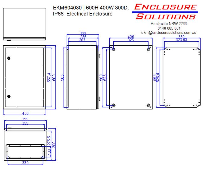 | EKM604030 600H 400W 300D Industrial electrical enclosure steel metal box cabinet switchboard, IP66, RAL 7035 Grey | Specifications |